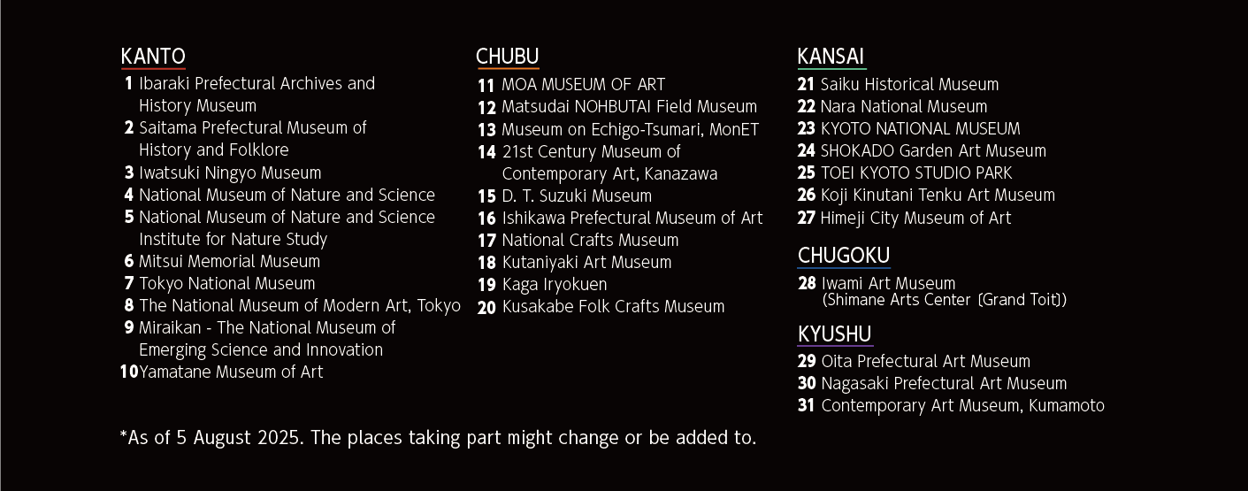 日本の美意識と物語を映し出す作品、自然との調和を見つめる科学の眼差し、磨き抜かれた匠の技、静けさに包まれた庭園など、日本文化の奥深さと出会う旅が始まります。